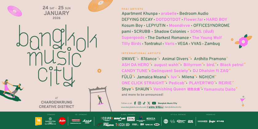 ประกาศแล้ว! ไลน์อัปชุดที่ 2 ของอีเวนต์สัมมนาเชิงธุรกิจและโชว์เคสดนตรีระดับนานาชาติแห่งปี “Bangkok Music City” (BMC) นำโดย Tilly Birds, The Young Wolf และ Flower.Far พร้อมกองทัพศิลปินน่าจับตามองจากทั่วเอเชีย รวมกว่า 100 ชีวิต เสาร์อาทิตย์ที่ 24 – 25 มกราคม 2569 ณ ย่านสร้างสรรค์เจริญกรุง เปิดลงทะเบียนเข้างานฟรีผ่านแอปฯ Bangkok Music City และจำหน่ายบัตร Priority Lane ราคา 350 บาท ที่ www.thaiticketmajor.com